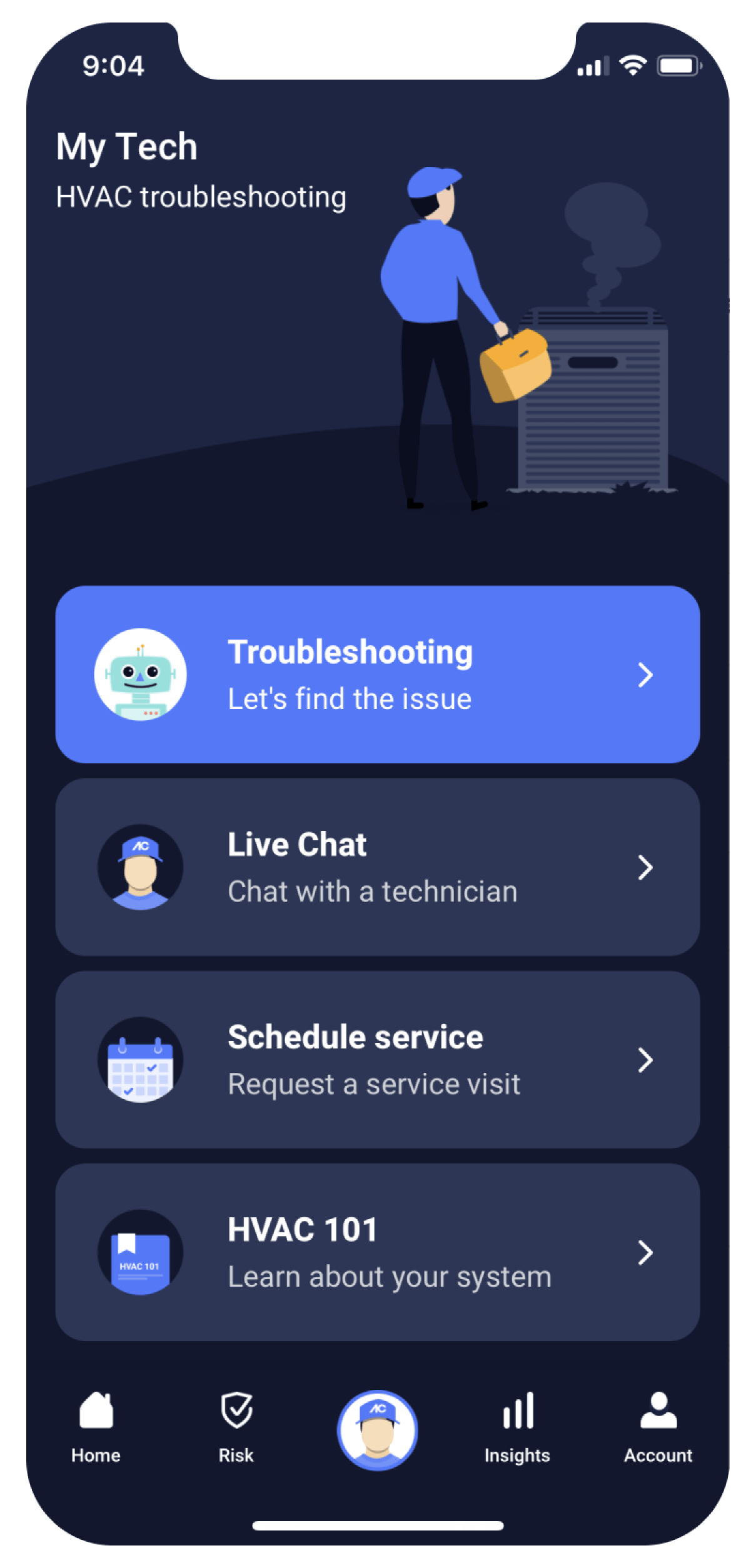 Leverage 24/7 system health alerts & water detection, live chat, in-app scheduling, filter replacements & more.